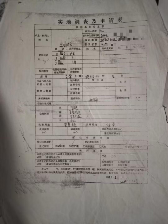 (自家实地调查申请表,王女士提供)