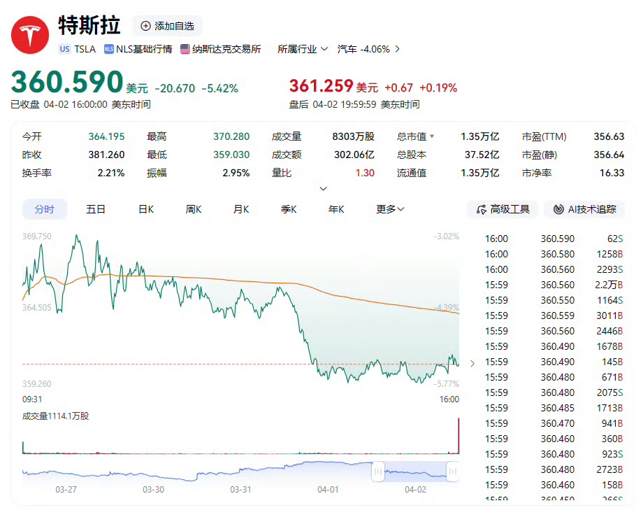 交付数据公布后,特斯拉股价单日跌超5%,创2025年11月以来最大跌幅,市值蒸发约4630亿元。投资者担忧汽车业务增长停滞,而AI叙事尚未兑现商业化成果。