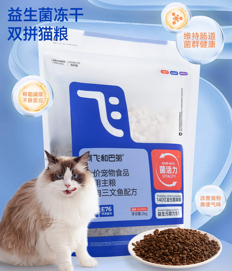 阿飞和巴弟成立于2017年,品牌主要经营功能性猫粮,解决猫咪日常生活中的小问题。这款猫粮非常贴心地将冻干成分单独分装出来,铲屎官们喂食时可以自己搭配冻干或者将冻干作为奖励,按照需求进行投喂。什么猫粮好冻干猫粮排行榜前十名,这款猫粮添加了三文鱼成分。猫粮主打肠胃菌活力,特别添加了活性益生菌成分,可以调理肠胃,维持长期健康。