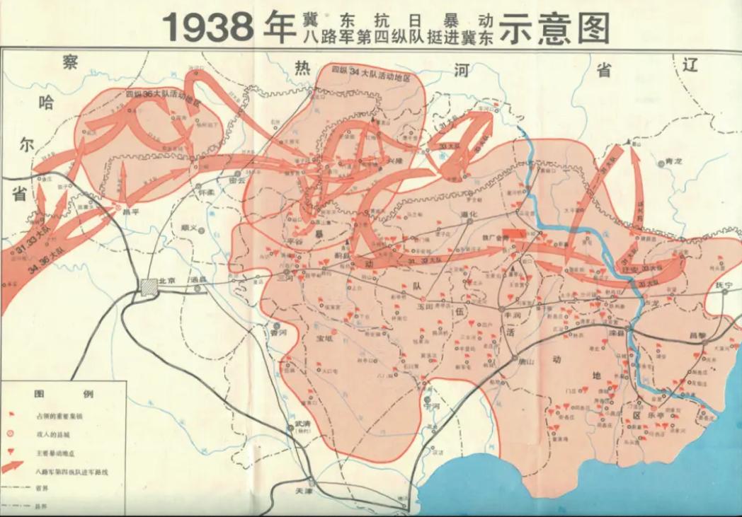 至1938年6月,宋时轮、邓华率领八路军第四纵队从平西挺进冀东,客观上为后来的冀东人民抗日武装起义打下了坚实的基础。
