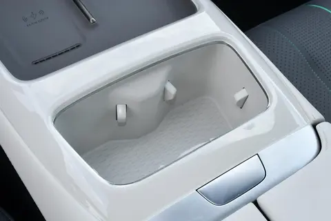 储物空间方面,后备厢常规容积有473L,放入两个24寸行李箱外加几个随身背包绰绰有余。如果需要装载大件物品,如婴儿车、露营装备等,后排座椅支持比例放倒,可进一步将容积扩展至1180L,灵活性不错。此外,它还有一个70L容积的前备箱,可以存放充电设备、擦车毛巾等零碎物品,让车内空间更整洁。车内的储物格设置也比较丰富,车门板、中控台下方的空间都经过规划,特别是中控台下方提供了带散热孔的50W无线快充面板,让手机充电变得方便快捷。