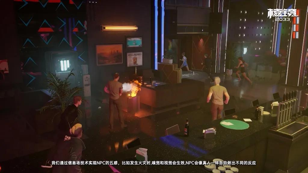 简单举个例子,常规的AI对话里,AI只是根据上下文跟玩家聊骚,但在《棱镜2033》实机演示中,对话能影响NPC行为,当玩家和一个自动售货机对话后,能突然把它吓跑。