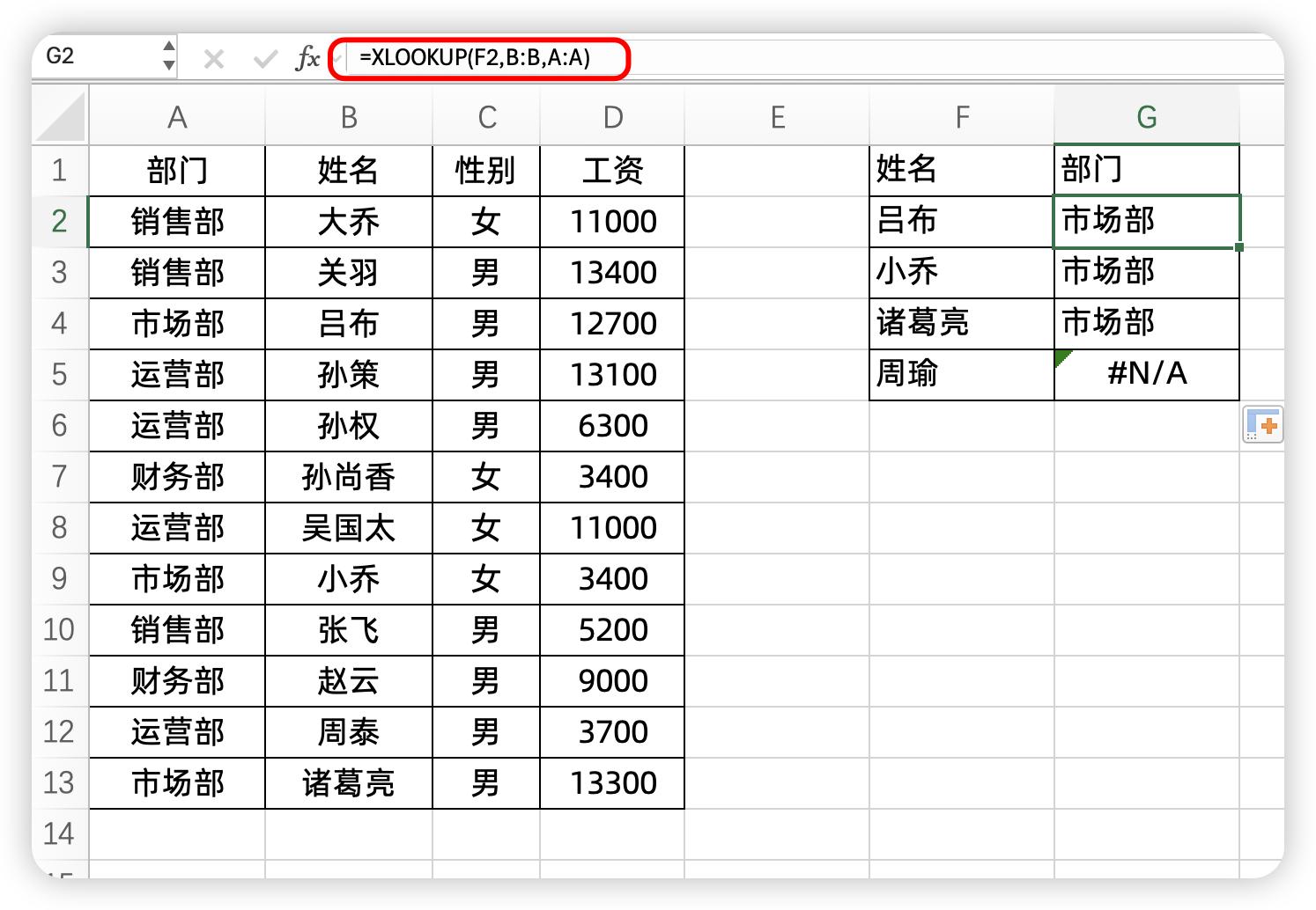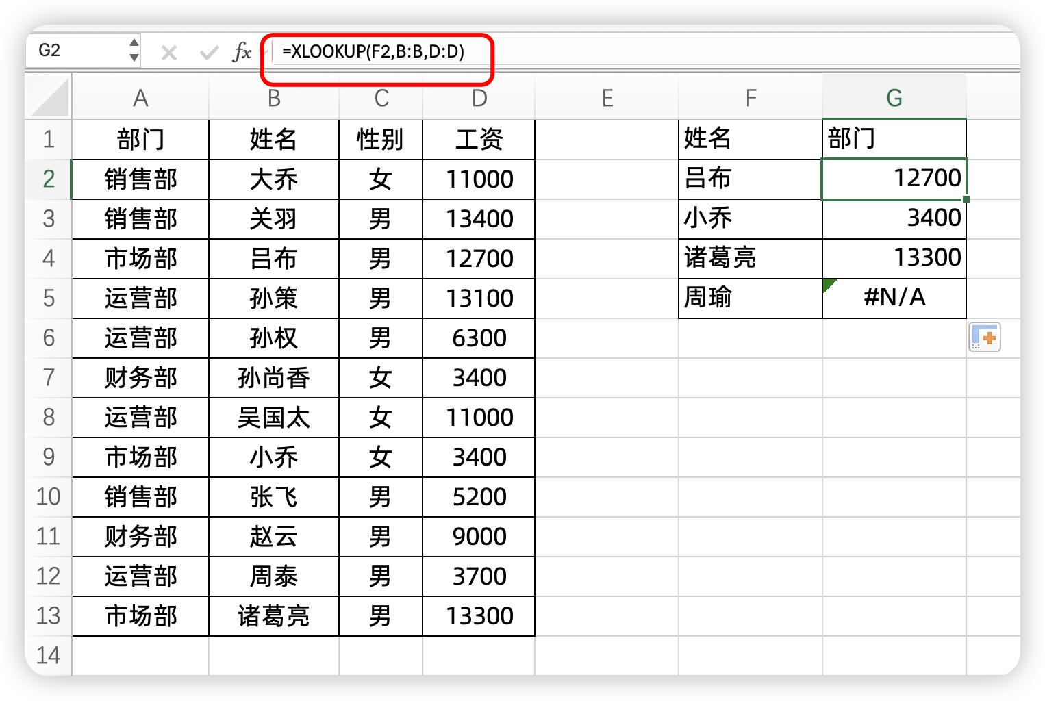 如果我们想要的结果是工资数据,那只需要将结果列,改成工资列即可: