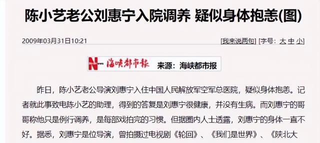 虽然没有离婚,但看两人的现状,像是已形同陌路,刘惠宁独自在疗养院治疗,三五朋友偶尔去探望,却不见陈小艺的身影。
