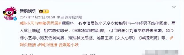 猫眼电影2017-11-27 17:25:陈小艺被曝姐弟恋,和丈夫结婚19年,曾被誉为娱乐圈模范夫妻