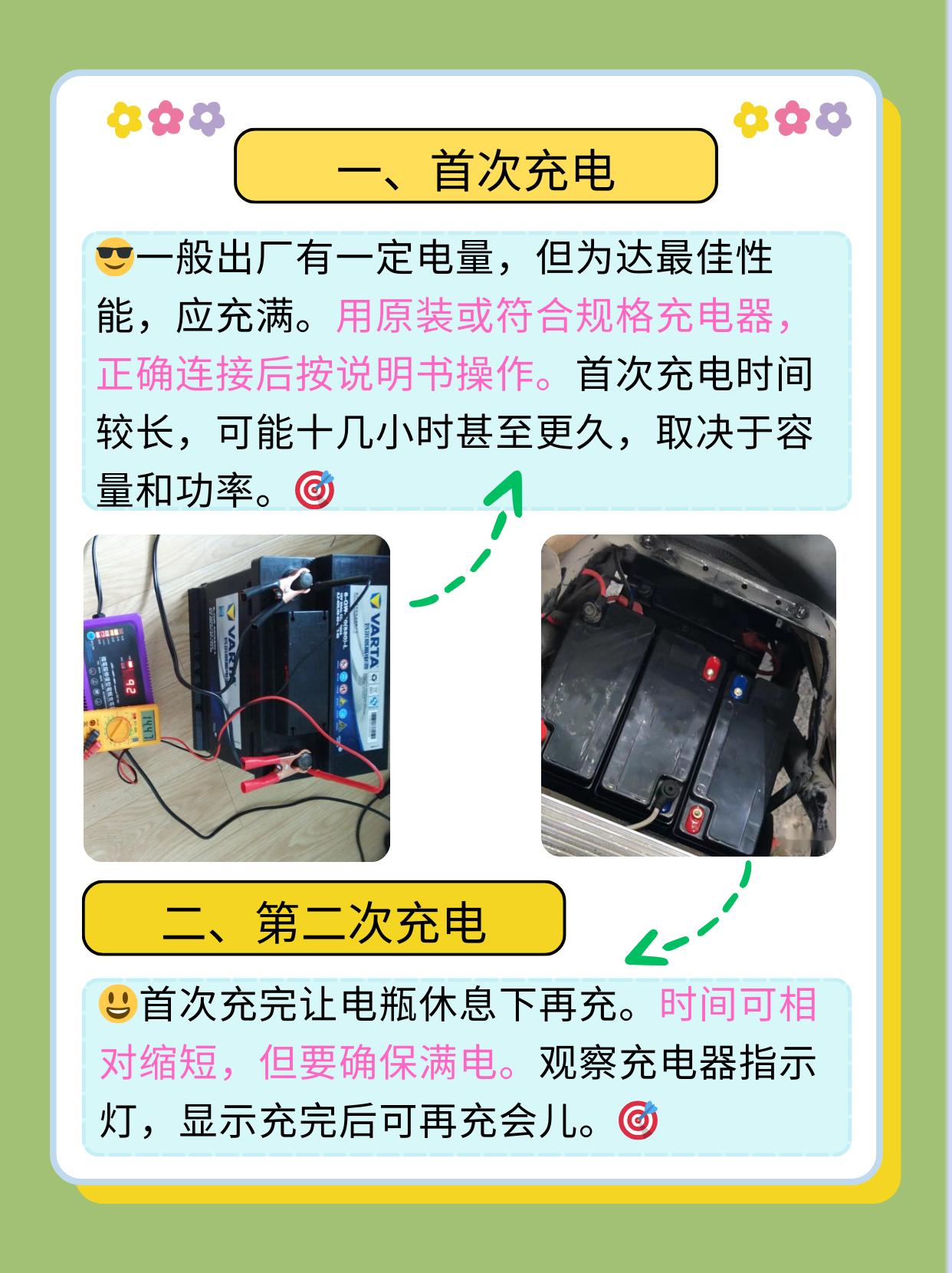 1. 新车头三次充电要规范:新电池到手后,先将剩余电量耗尽至约10%(切勿完全跑干),然后用原厂充电器一次性充满至绿灯亮起后,再继续浮充1-2小时,累计充电时间控制在8-10小时。头三次充电都遵循“浅放满充”原则,让电池极板充分活化,建立稳定的容量基准,切忌头几次就过度放电。