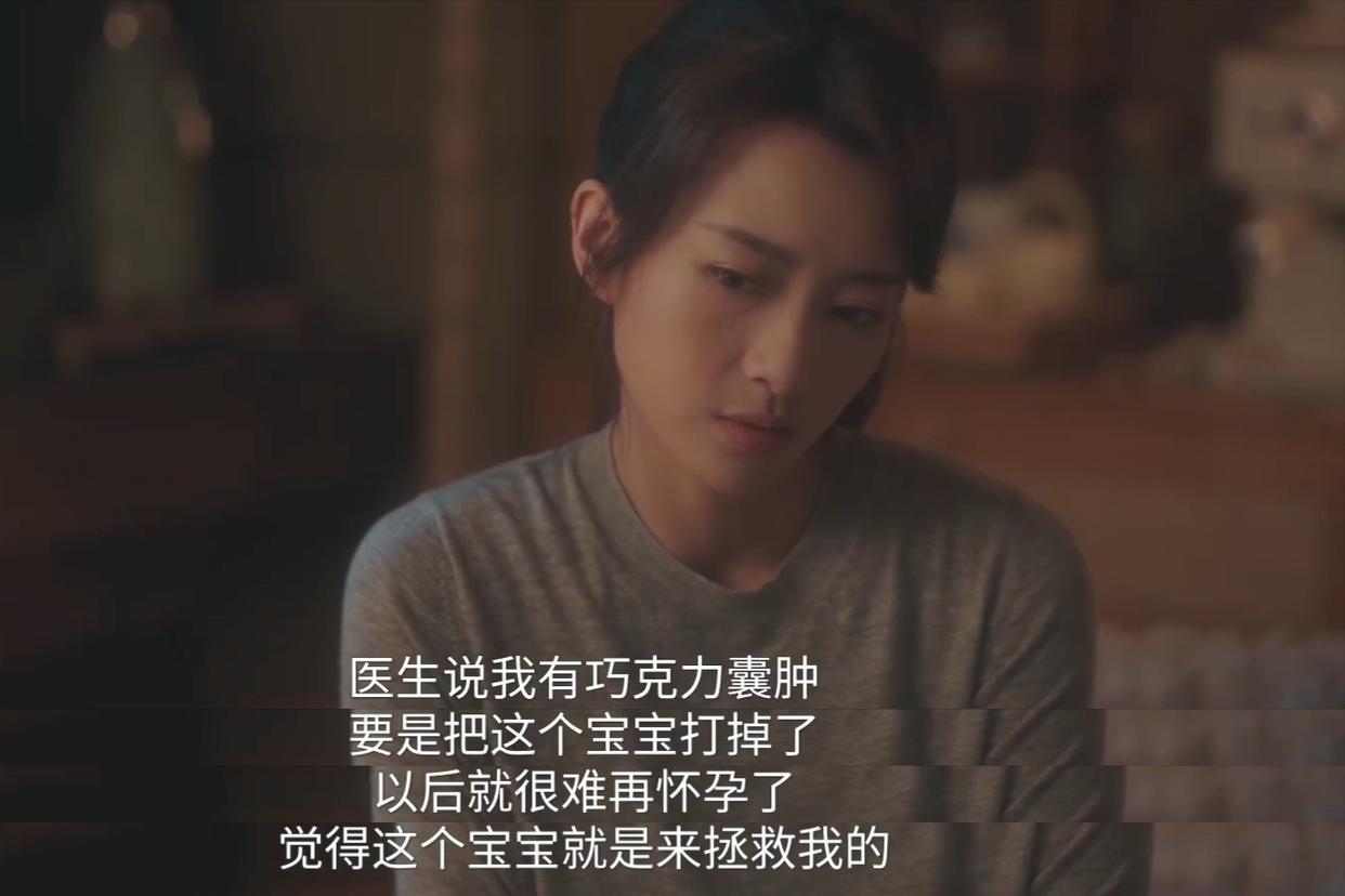 编剧还给冯美奇一个非生不可的理由:巧克力囊肿。要是流掉这个孩子,未来再也无法生育,相反,若是留下,囊肿很有可能会自行吸收、消除。