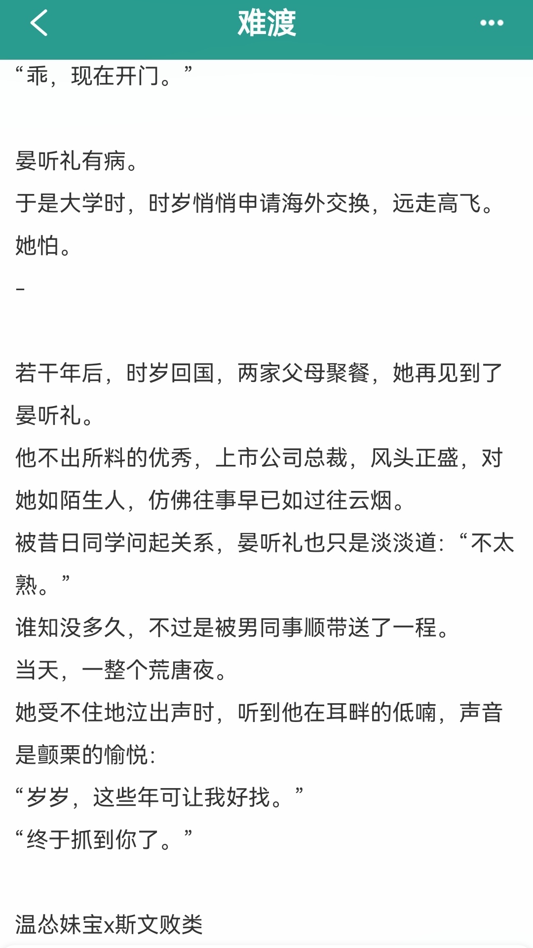 难渡——强取豪夺恋爱脑晏听礼vs温柔坚韧怂妹时岁