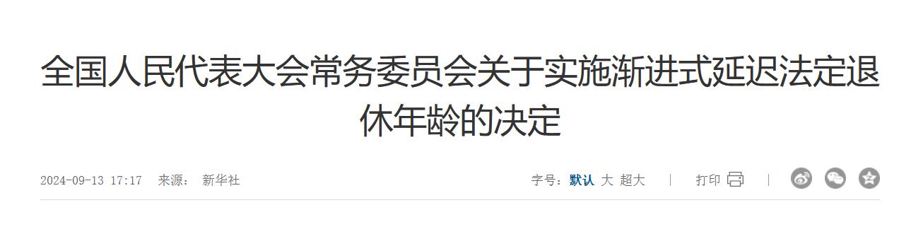 参考资料:新华社—全国人民代表大会常务委员会关于实施渐进式延迟法定退休年龄的决定
