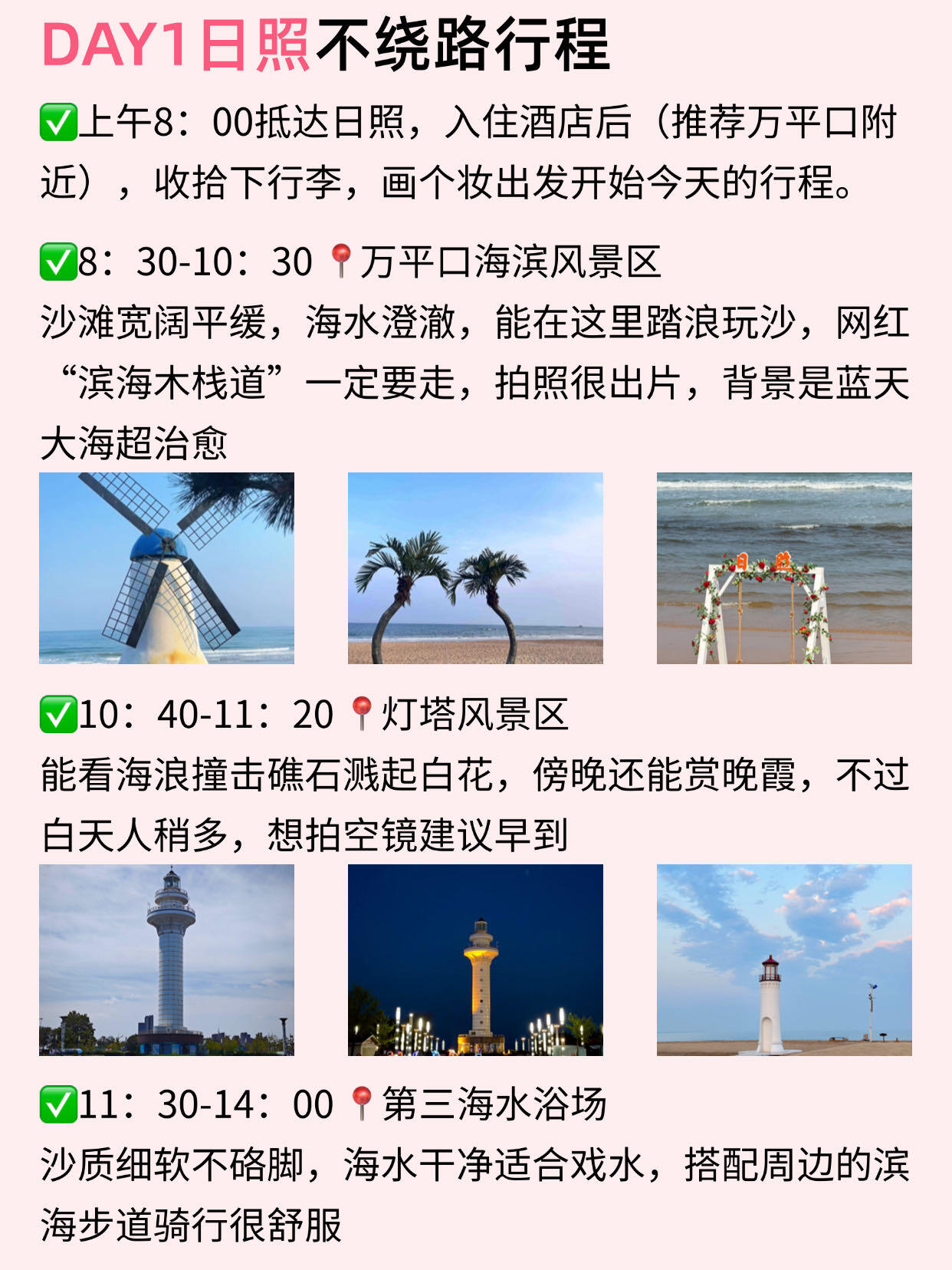 万平口海滨风景区🌊→灯塔风景区🗼→第三海水浴场🏖️→山海天旅游度假区🌅→太公岛牡蛎公园🦪