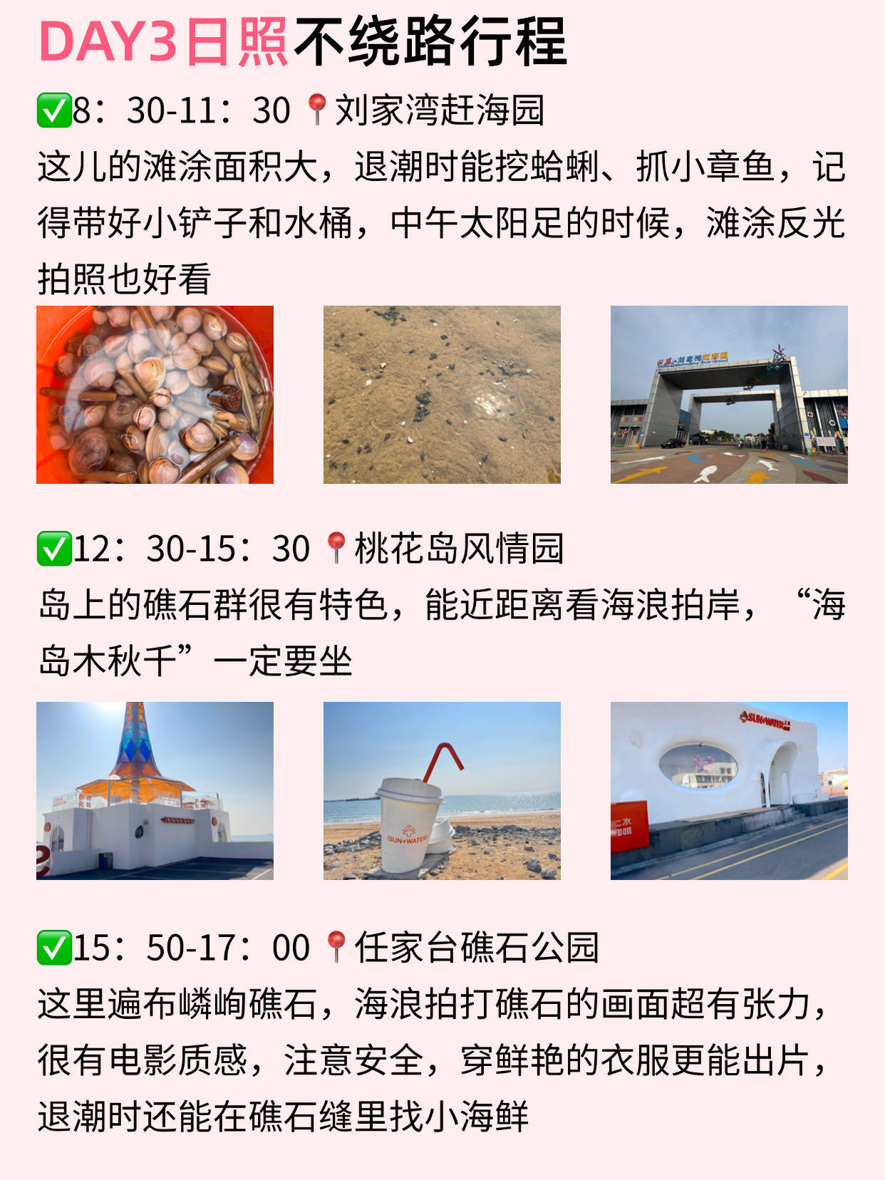 刘家湾赶海园🐚→桃花岛风情园🏝️→任家台礁石公园🌊