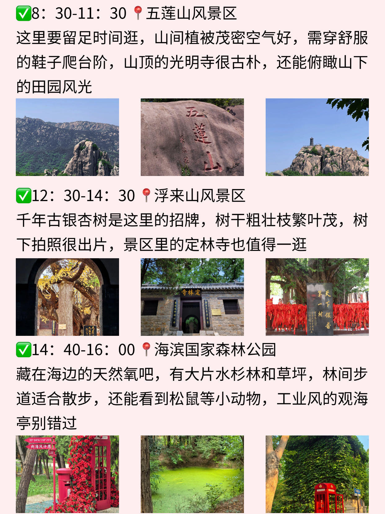 五莲山风景区🏞️→浮来山风景区🍂→海滨国家森林公园🌳