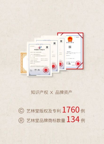 截至今日,艺林堂已累计完成 受国家法律保护的1760项版权与专利成果,以及商标134例。