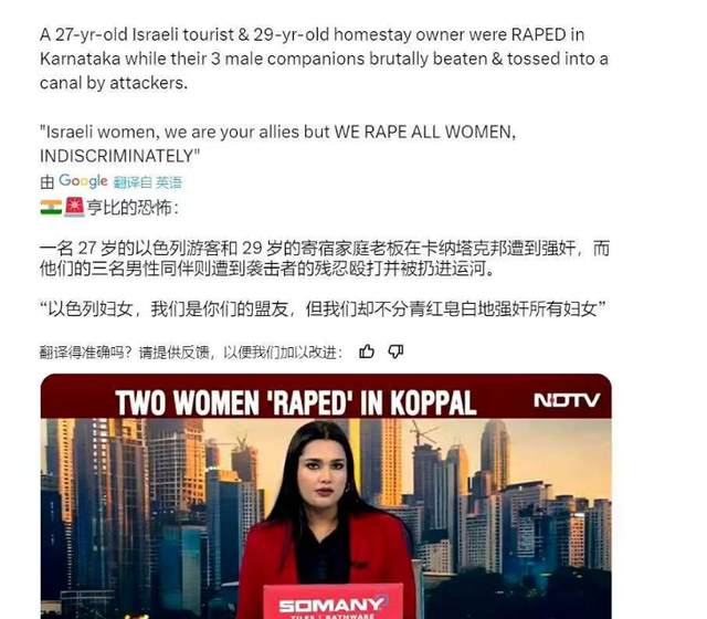 1 以色列女性在印度被性侵,不知道印度最终会给出怎样的交代,关注。