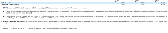 2025年全年,VinFast全球交付196,919辆汽车。在越南市场共交付175,099辆,同比增长101.3%,占越南汽车总销量近三分之一。