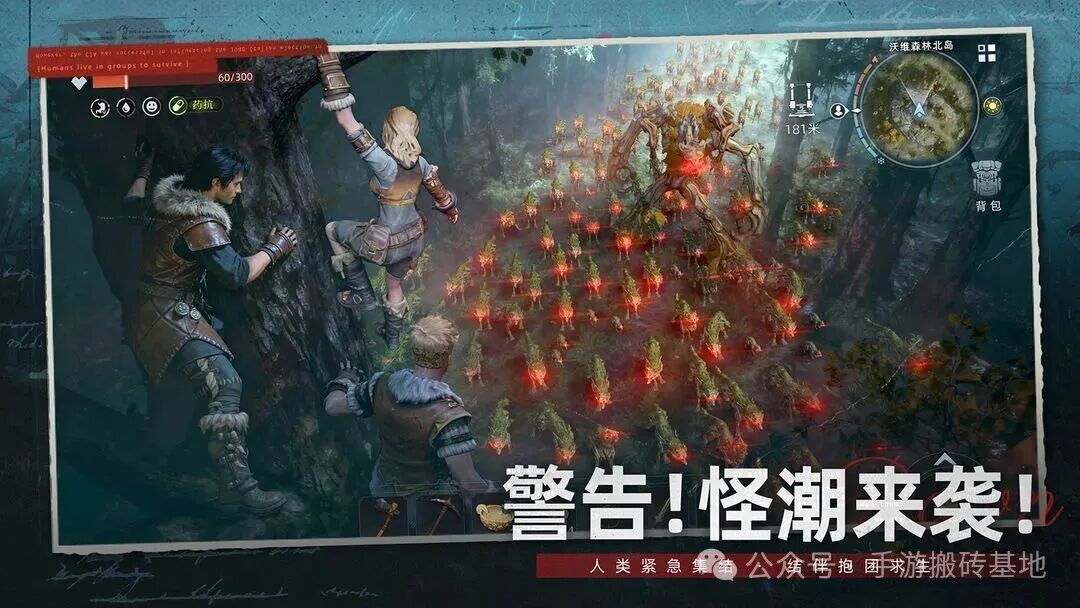 千人群居防线特别刺激,服务器会有天灾,得跟上千个玩家一起建营地,布上棘阵和投石机关,不然到了晚上怪物会翻倍,根本扛不住;