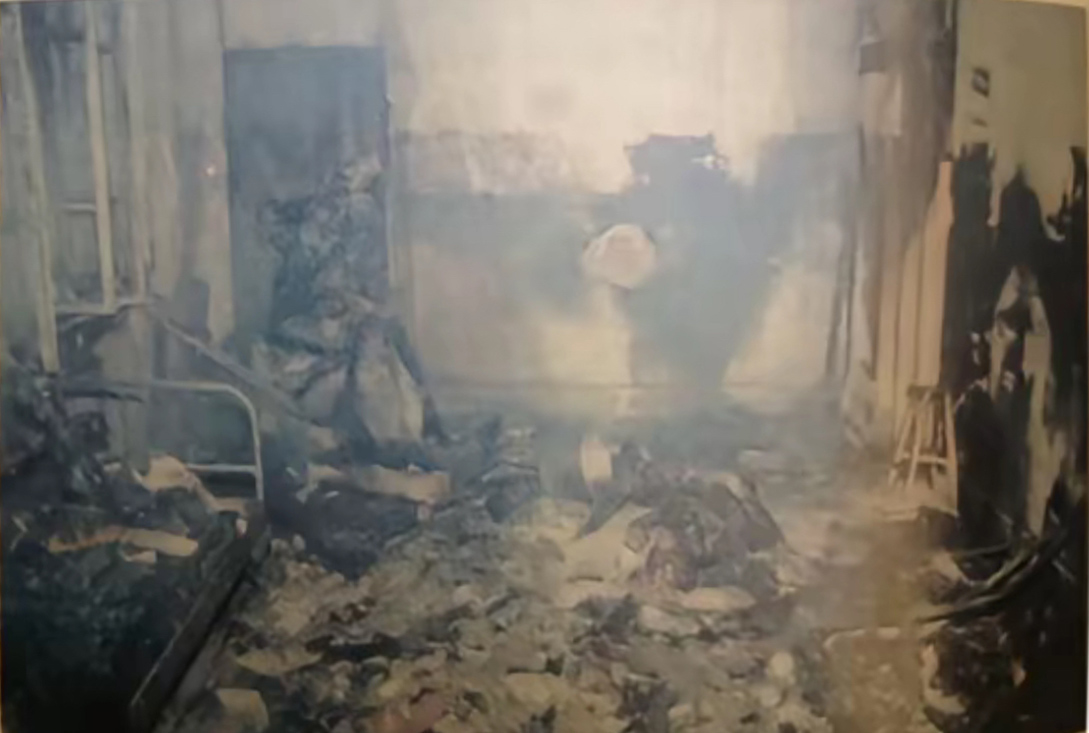眼看炸药不起作用,孙海波顿时感觉到绝望,此时他和田宇一商量,干脆放弃算了,再不走马上就走不了了,但是田原的尸体怎么办呢?起初田宇要把他哥的尸体背到车里,但是试了试发现太沉,孙海波看了看被炸药点燃的沙发垫,就说,别弄了,放把火烧了算了。于是两人把能烧的东西都集中起来,例如被褥、床单什么的,加上已经点燃的沙发垫,全部扔在田原身上,再用打火机着。随后两人就离开了值班室,去一楼中庭找闫文宇。