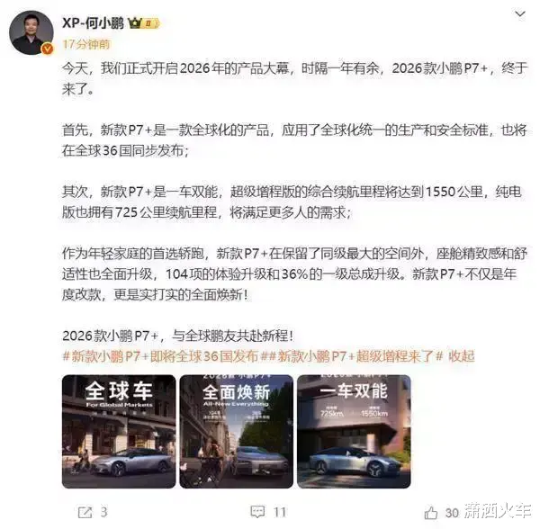 毕竟现在用户对于充电桩来说,还是有点不信任,或者是续航焦虑比较严重,那增程或者插混就是最好的选择了,所以26款的小鹏P7+来了;