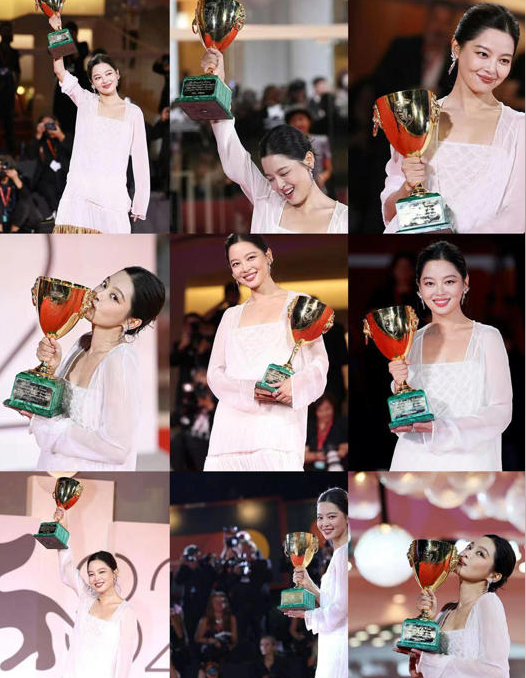 捧着沉甸甸的辛芷蕾击碎了很多85花和大花们的内心,因为这两代女演员都没有人获得过这个奖,获得过这个奖的是巩俐和叶德娴,所以有网友喊李冰冰、周迅和章子怡赶紧进组拍戏,获奖靠实力也要靠运气,假如遇到一个强大的女演员同台竞争,估计是很难获奖的,而这届威尼斯电影节注定要成为辛芷蕾的荣耀时刻,她值得拥有。
