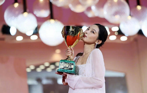 今天站在这儿了,能站在这个世界级的舞台上,能跟那么多来自世界各地的顶级女演员同台竞技,并且得到这个奖,为自己感到骄傲。也为自己作为一名来自中国的女演员能再次站在威尼斯的舞台上感到骄傲。