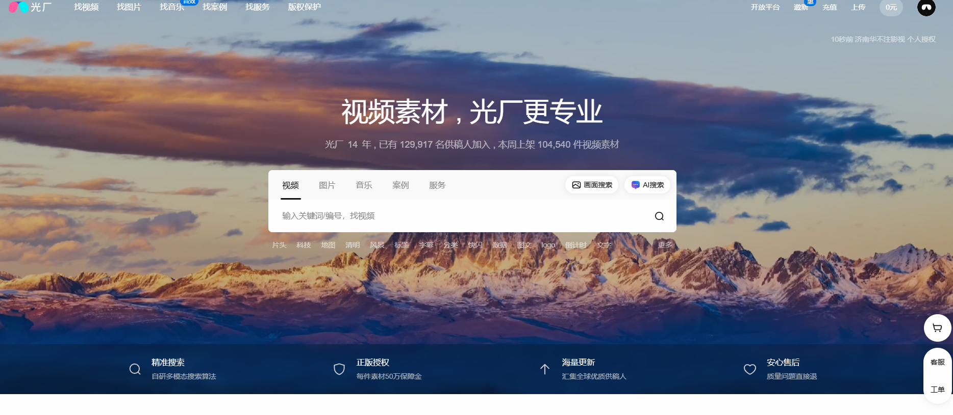 视觉搜索黑科技:支持“以图搜图/视频”,用户可以上传一张参考图,快速找到构图相似的夜景素材,极大提升了找素材的效率。