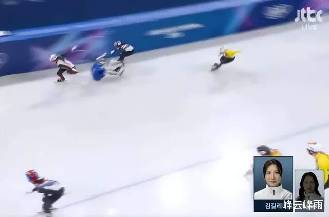 根据规则,若比赛中因两名选手直接接触(犯规)导致摔倒,则需满足该选手在摔倒时处于前两名以内,方可晋级下一轮。但韩国队被判定在比赛过程中为第三名,因而未能获得补救。教练组虽提出抗议但无济于事。