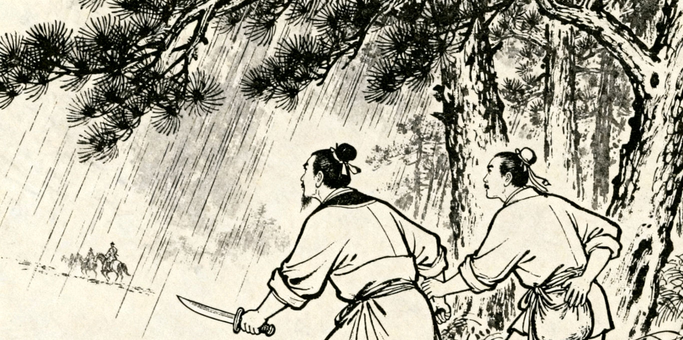 刚走出山神庙,就撞见了前来换班的两个强盗。那两个强盗见有人救走了柳冲,顿时拔刀相向:“哪里来的小子,敢坏我们的好事!”