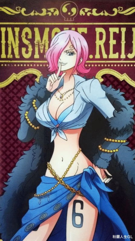 粉发+紫唇的哥特配色,打破"杰尔马=冷色调"传统,海贼王首个"姐系顶流"。吸毒素时泛红晕的脸颊VS平时高冷女王范所形成的反差萌也令人津津乐道。