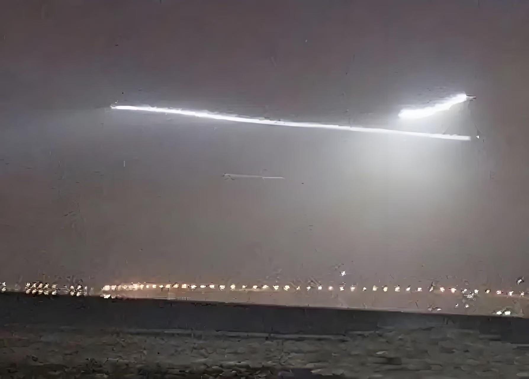 机场的天空上,一道巨大的长条形光柱俯射下来,引得人心惶惶。