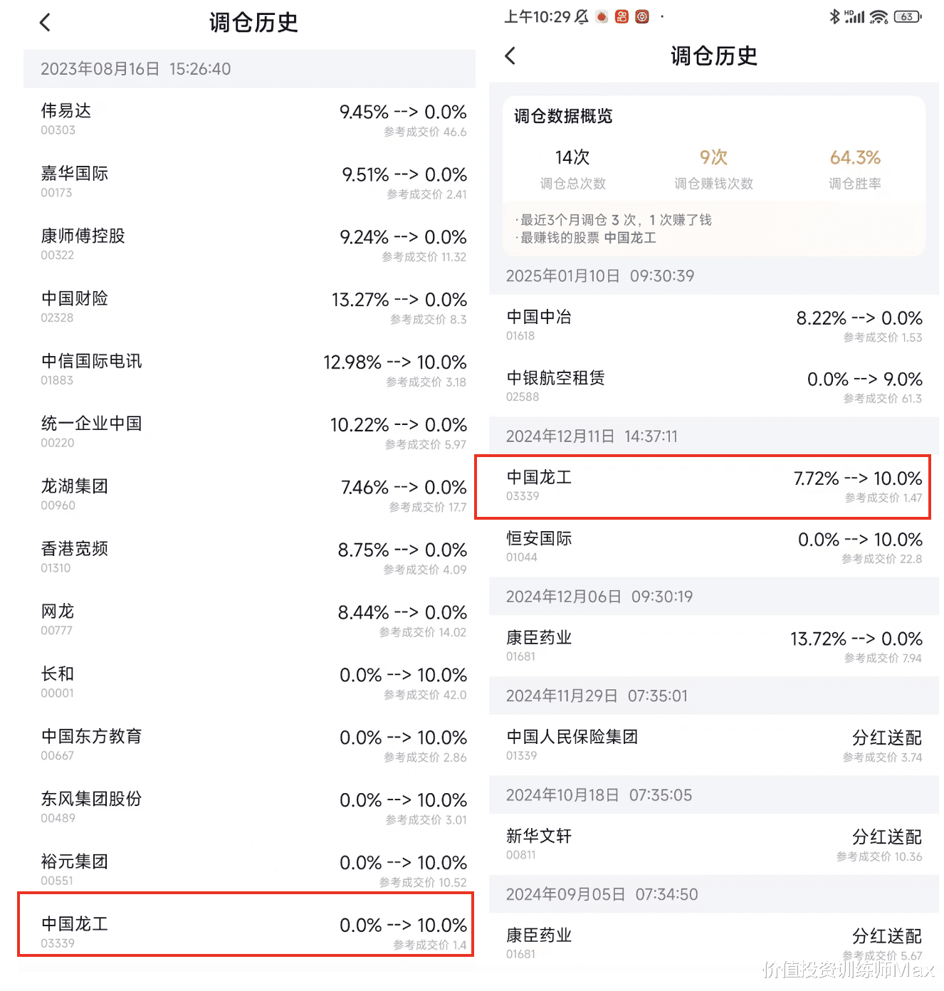今天介绍简单介绍组合“龟速港股低估高息”中的个股——中国龙工。组合是在2023年8月份第一次购买中国龙工,2024年12月再次提高仓位,如下图所示。