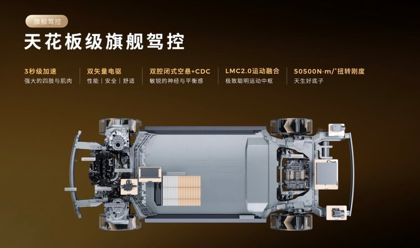 驾控上,LMC2.0底盘系统不仅能实现3.6米级圆规掉头,更将双轮爆胎识别时间从500毫秒压缩至200毫秒,多争取10米安全距离。而九横三纵四连环笼式车身、2000Mpa回形五重钢A柱的安全设计,以及首装车规级森野氧舱的舒适配置,让D平台的“旗舰”标签,每一处都有技术兜底。