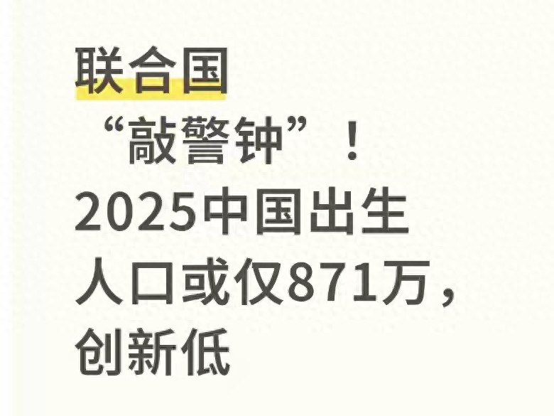 联合国在《世界人口展望》中明确指出,中国人口将在2025年迎来首次出生人口跌破900万(预计为871万),新生人口占世界比例将跌破7%。这标志着中国作为世界最大人口国的时代,正加速成为历史。