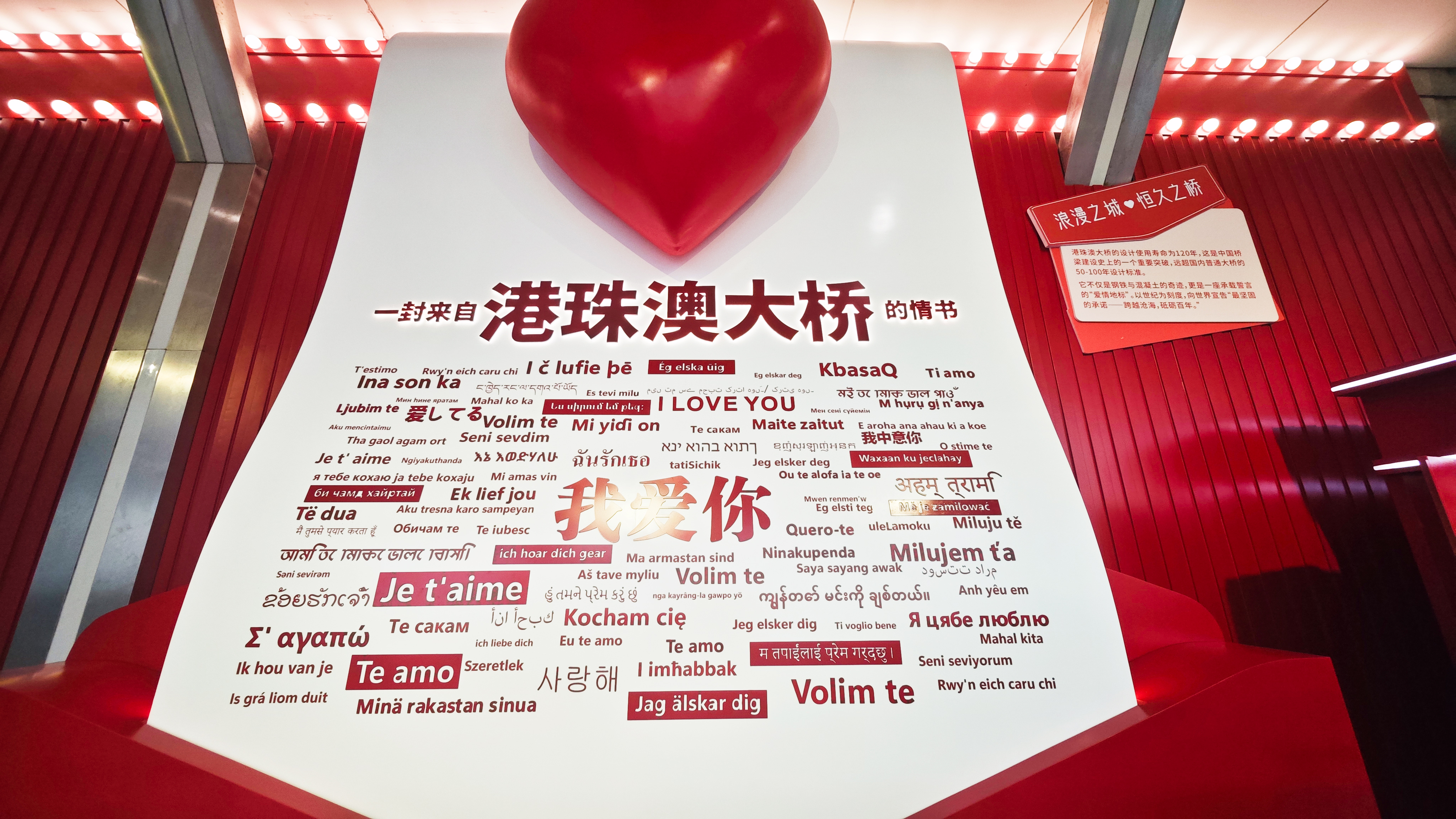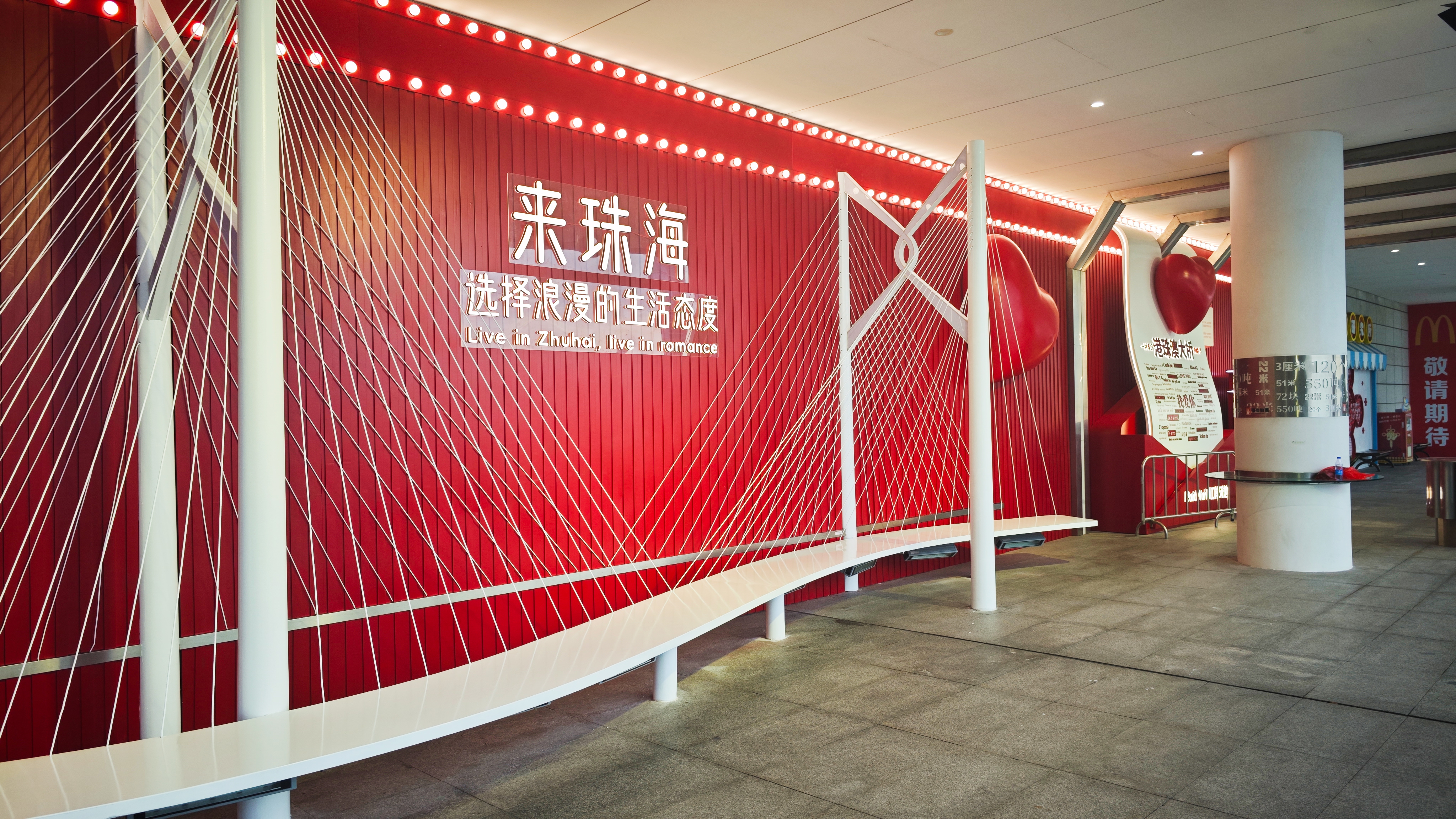 为强化首站主题特色,大桥珠海口岸紧密结合港珠澳大桥作为“超级工程”“情感纽带”“地标象征”三重特质,精心打造“港珠澳大桥主题浪漫美陈”。通过艺术化的设计和创意表达,将港珠澳大桥的雄伟壮丽与浪漫元素巧妙融合,营造温馨、甜蜜、充满希望的沉浸式氛围,使口岸成为集交通枢纽、情感联结与消费热点于一体的城市新地标,让中外旅客深刻感受珠海浪漫的城市脉动。