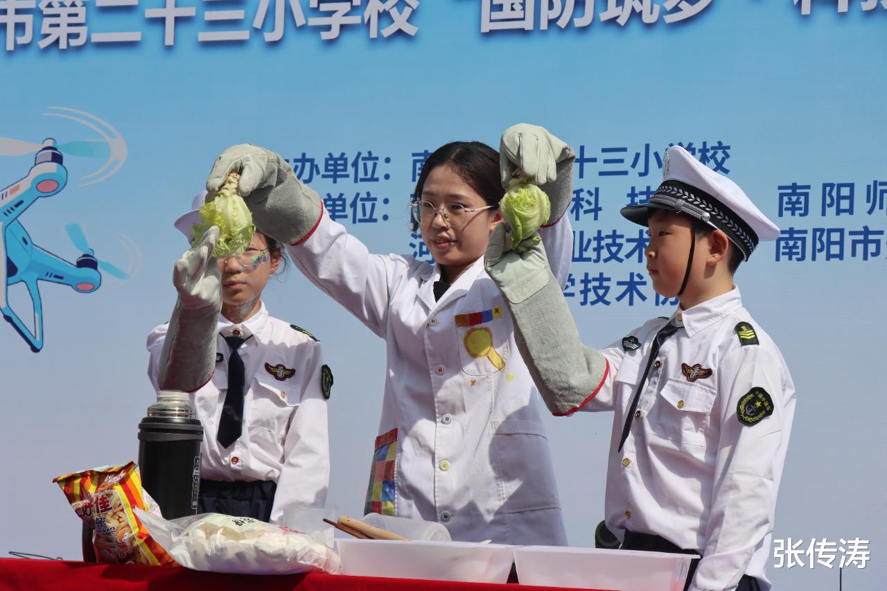 本网南阳4月17日讯(《人民视点》记者 张传涛 通讯员 司晓凯)为深入推进全民国防教育普及,将国防精神与科学素养培育深度融合。4月17日上午,河南省南阳市城乡一体化示范区学雷锋志愿服务大队国防教育宣讲中队联合辖区军创单位,走进南阳市第23小学第三届科技节观摩学习,现场体验这一场兼具知识性、趣味性与教育性的科技国防盛宴。