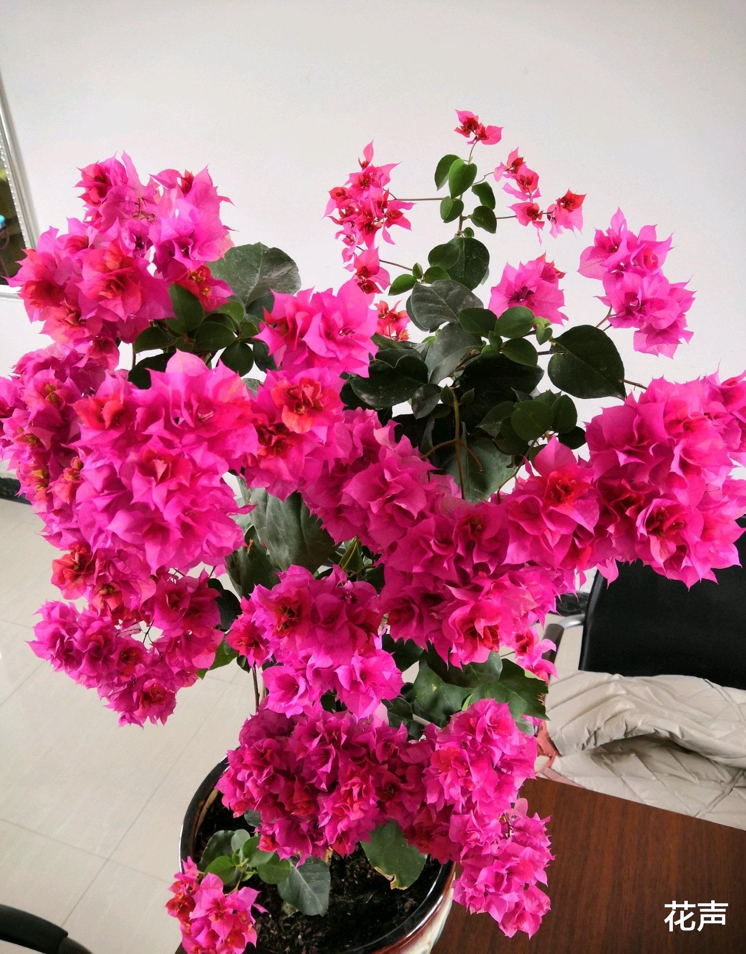 在开花方面,重瓣红还是重瓣系列三角梅里最勤花的,多季节重复开花,在我们华南这边,全年都能开花,在其他地方也能从秋天持续开到第二年的春季末,大冬天里也能热烈绽放(前提是冬季搬到温暖的地方,能隔着窗户晒太阳),而且单花花期超级长,一开就是数个月之久,远胜单瓣品种。