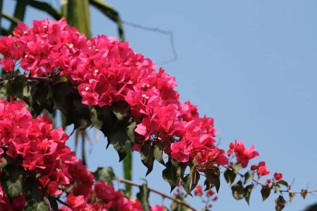阳光透过头顶的三角梅,在地面上投下心形的光斑;风吹过时,这些心形光斑开始晃动、变形、重新组合。