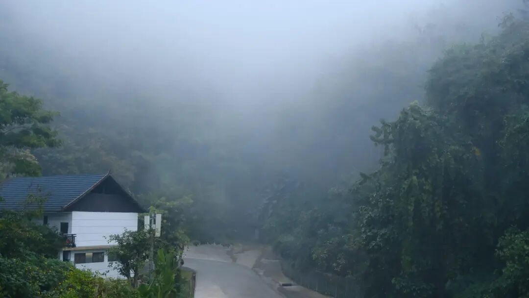 雾从山谷底部升起,像一层薄纱覆盖着热带雨林。望天树的树冠层最先接触到阳光——那是一种温柔的橘红色,从东方天际线缓慢漫开,然后突然之间,一束光穿透了迷雾,直直地刺入雨林深处。