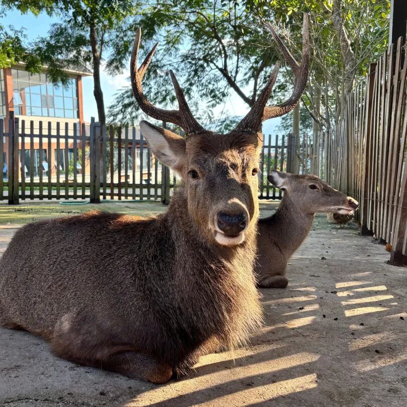 这是野熊谷最慷慨的时刻。整个下午积蓄的热量开始消退,取而代之的是那种暖到心底的橘黄色。阳光洒在梅花鹿的脸上,他们也即将进入梦乡。