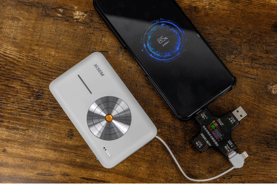飞利浦这款产品主打稳重耐用。自带Lightning与Type-C两根线,能满足主流手机的直接连接,插拔顺畅,线缆弹性较好。22.5W快充功率虽不算高,但胜在兼容性广,iPhone与安卓都能识别。20000mAh容量充一次平板仍余电,续航表现扎实。整机约320g,手感偏厚重,不太适合口袋携带。小电流模式是它的细节亮点,能安全给耳机、手表补电。长时间使用后电芯稳定,几乎无明显发热。外观简约、结构结实,更像一款可靠的“日常工具型”充电宝,适合注重安全和耐用性的用户。