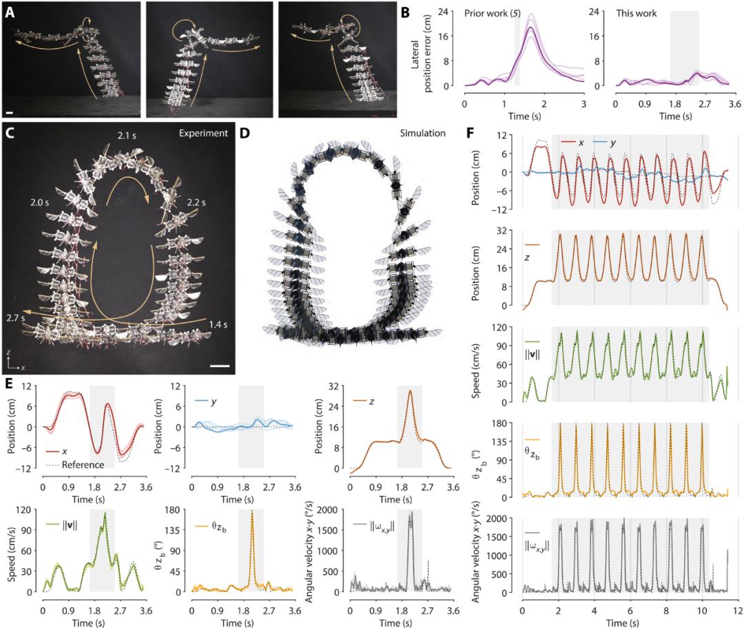速度提升 4.5 倍,11 秒翻 10 个空翻实验结果显示,这套“两步走”的 AI 控制架构,为这台昆虫尺度的软体飞行器带来了质的飞跃。