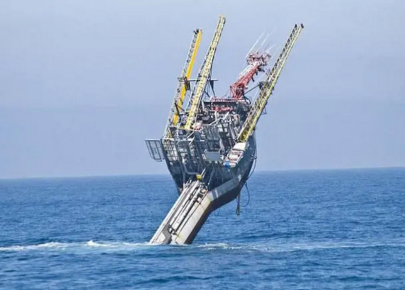 不是科幻片,也不是电脑特效。在太平洋的某个海域,一艘长达108米的庞然大物,正头朝下、尾朝上,像一根标枪一样直直地“插”在海里。任凭周围风急浪高,它纹丝不动,稳得像一座海上钻井平台。