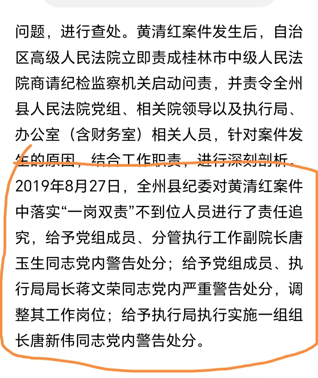 2019年8月,全州县纪委给予唐玉生党内警告处分,给予蒋文荣党内严重警告处分。