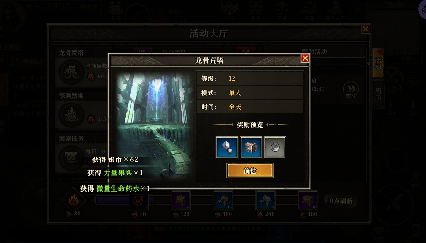 龙骨荒塔的奖励非常丰厚,包括20级锻造石、基础材料箱以及银币等。20级锻造石是打造20级装备的必备材料,使用这种矿石锻造出的装备将继承龙族的强大力量,赋予穿戴者威震四方的能力。基础材料箱开启后能够立即获得各类基础材料,这些材料是制作装备、药剂和进行其他工艺活动的必需品。银币作为游戏中最常见的货币形式,广泛应用于购买低级道具、日常消耗品以及进行某些基础操作。