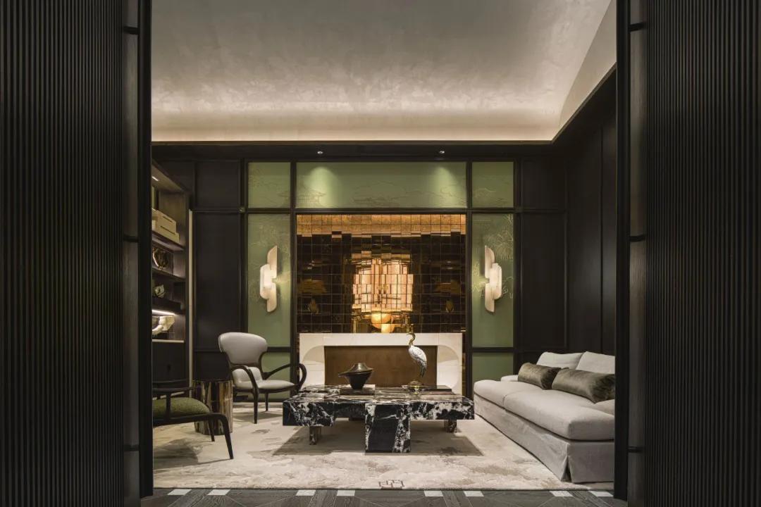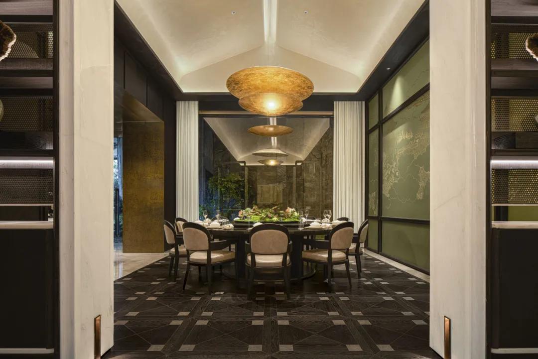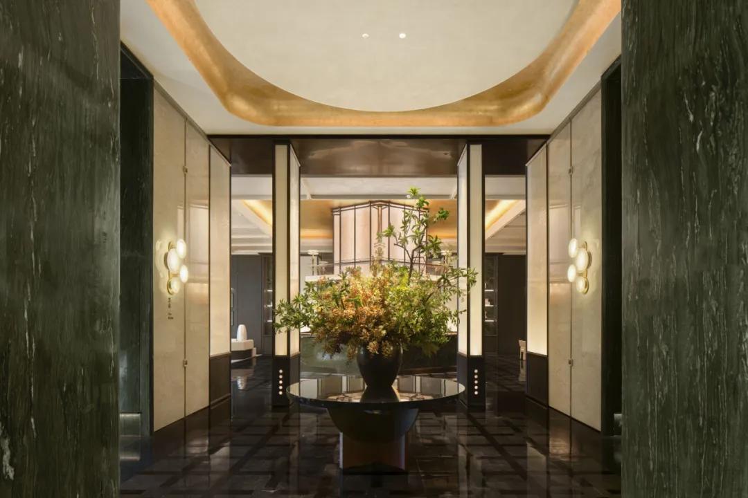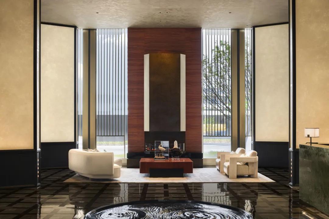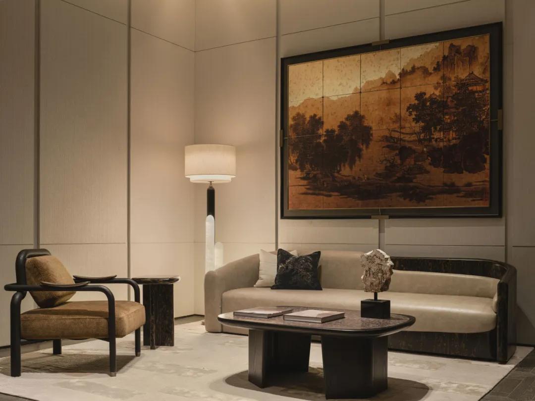 从杭州深厚的文化底蕴中汲取灵感,以“园林”的东方意蕴为基调,重新探寻现代东方生活方式的可能。正如唐代王勃《滕王阁序》中“潦水尽而寒潭清,烟光凝而暮山紫”所描绘的意境,设计师巧妙捕捉暮色中烟光凝聚、山色空蒙的微妙瞬间,将这种诗意转化为可感知的空间语言。