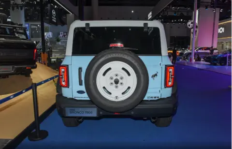 尾部设计上,福特烈马与大多数的硬派越野SUV相差不大,其配备了外挂式的备胎设计,而且尾门也是侧开门的设计,尾灯组同样为竖置的设计语言,而在后包围方面,车辆同样采用了粗壮的后杠设计,这也让车辆的硬派风格更加的出众。