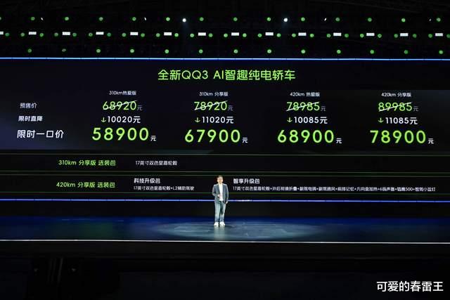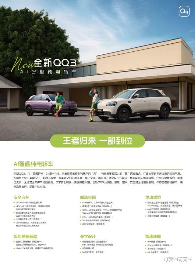 比如大家关心的充电成本,全新QQ3本身能耗就低,一公里电费不到一毛钱,再加上30%-80%快充仅需16.5分钟,日常通勤、周末出游,充电根本不用等,时间成本也省了。而整车的终身质保,更是从根源上降低了用车成本,不用为保养、维修发愁,哪怕开几年想换车,带着终身质保的车况,保值率也会更高。对于我们年轻人来说,买车不仅要看落地价,更要算长期的用车账,而全新QQ3的权益,让这笔账越算越划算。