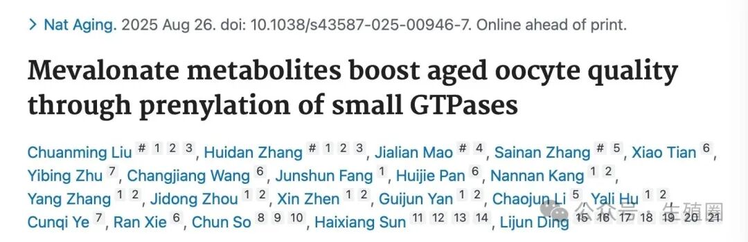 Mevalonate metabolites boost aged oocyte quality through prenylation of small GTPases. Nat Aging. 2025 Aug 26. doi: 10.1038/s43587-025-00946-7. Epub ahead of print.