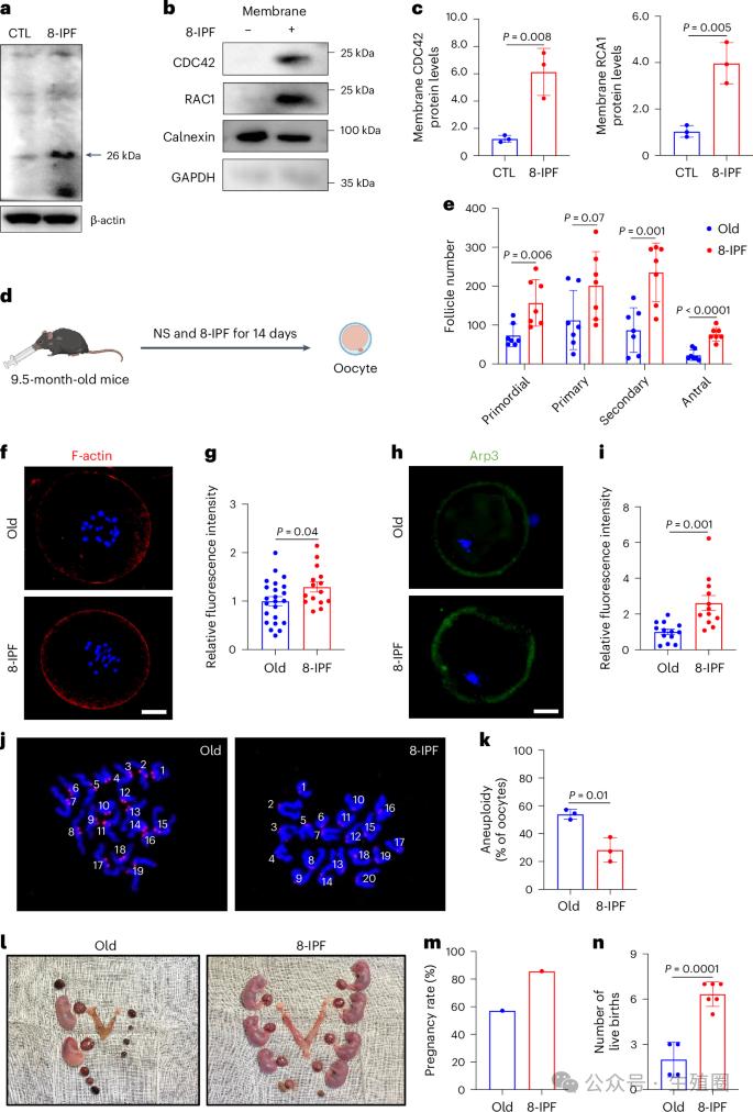 接受8-IPF治疗的高龄鼠妈妈们,它们的卵巢更饱满,卵泡储备,特别是能发育成成熟卵子的窦卵泡数量明显更多。