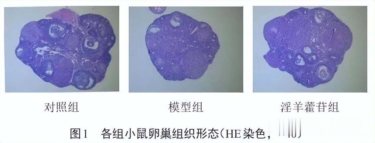 淫羊藿组小鼠卵巢质量显著增加,重量和对照组相差不大,但和模型组相比差异显著。