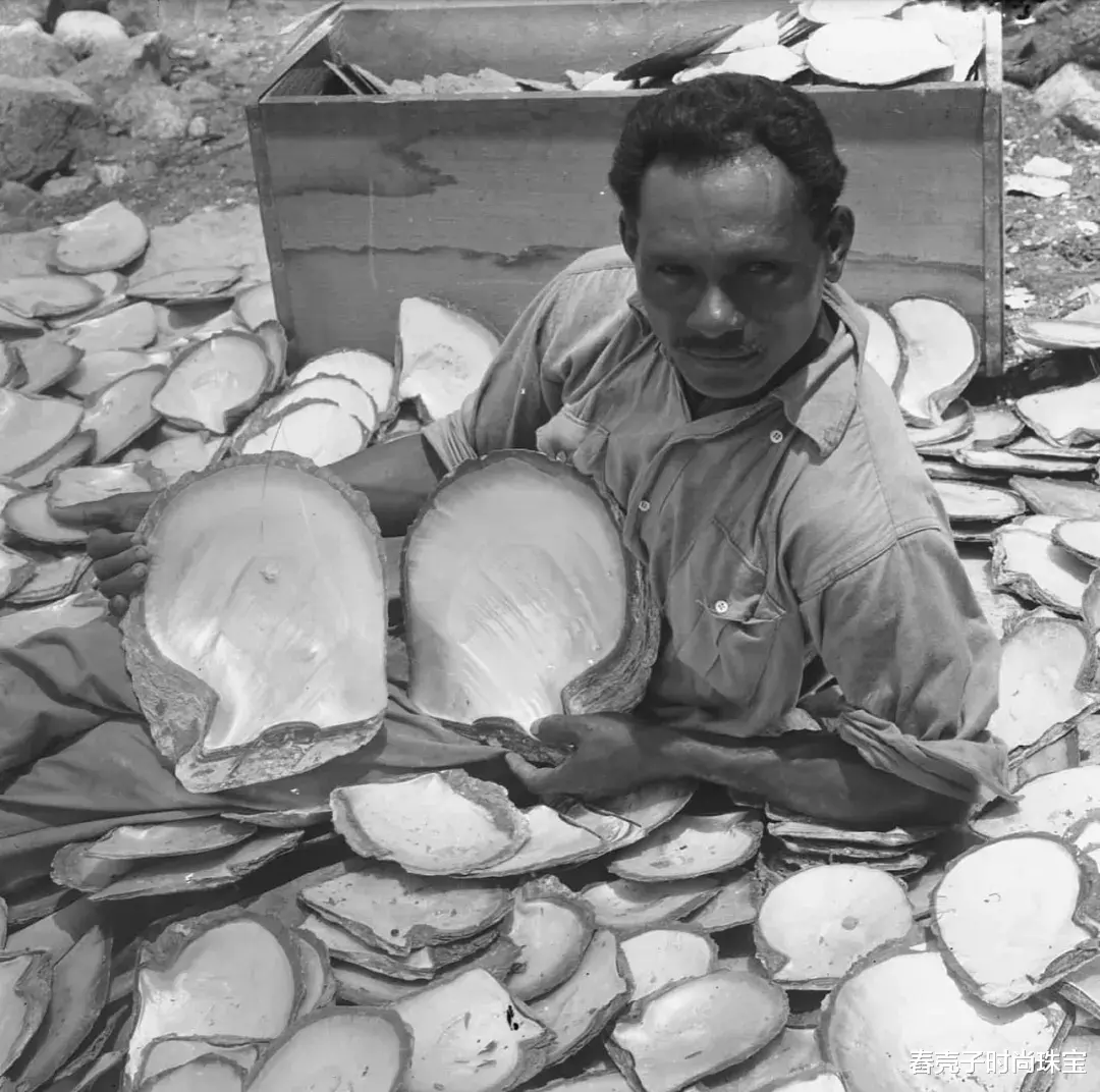 1933年悉尼珍珠纽扣厂的老照片:工人指尖捏的壳片,是大珠母贝裁的——就是那种能长到40厘米的澳大利亚南洋珠牡蛎,壳厚得能抵半枚硬币,珍珠层像浸了月光。19世纪60年代昆士兰起了珍珠业,星期四岛的分拣工蹲在滩涂上挑壳的样子,Frank Hurley把那双手拍进了国家图书馆——掌纹里全是咸湿的风。